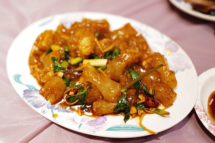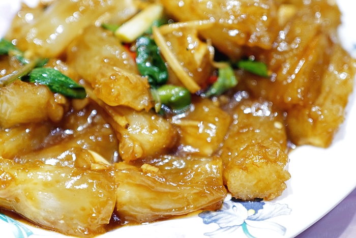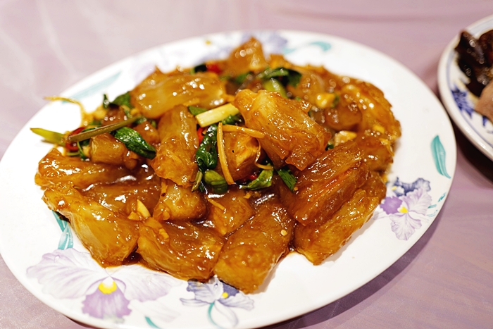 | 我個人就是那種熱愛吃豬蹄筋的消費者,每次看到菜單上有豬蹄筋我就會無腦的舊點上一份,紅燒的做法帶點甜我很喜歡,蹄筋也處理的很好,比豬腳更讓我滿意的一道菜。 |