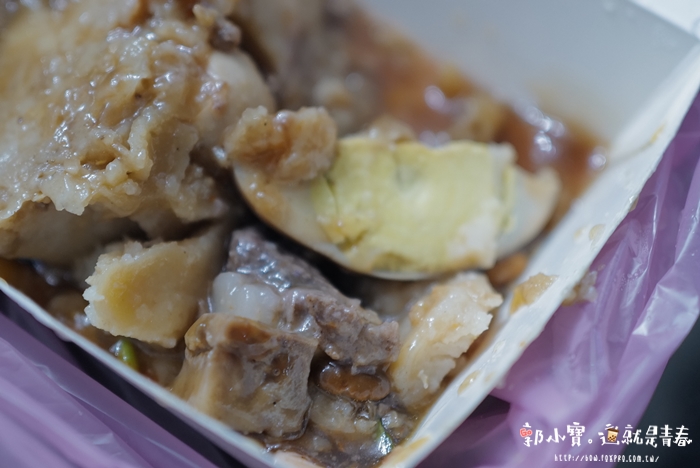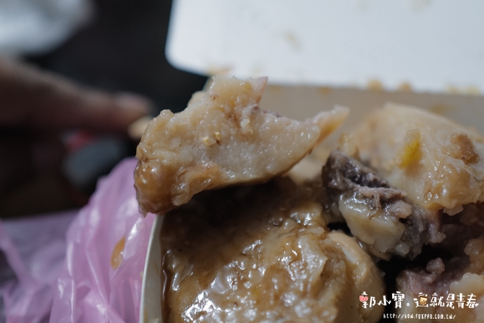 | 裡面的料確實滿多的,肉塊、鳥蛋、滷蛋等等吃起來非常過癮,比較特別的就是還有芋頭,這也是我第一次吃到裡面有芋頭的,對我來說配料真的太多反而有點雜了,咬到芋頭的時候瞬間會搶掉其它食材的味道,無法整個融合在一起,會一直出戲。 |