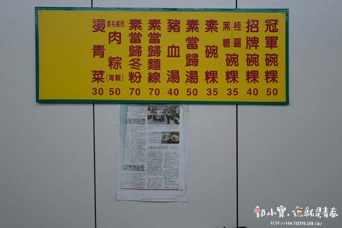 | 店內的菜單牌看起來價位都還是可以接受的範圍,冠軍碗粿據說是它們以前的料多碗粿,後來得了冠軍才改成冠軍碗粿。 |