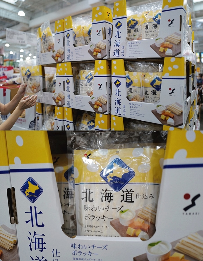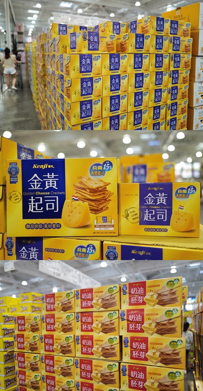 | 這次好市多看到的餅乾,曝光度還滿高的,除了結帳櫃檯前方有以外還有肉品區旁邊也有兩個棧板,我們一家就是看到起司口味就會沒有抵抗力。 |