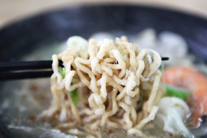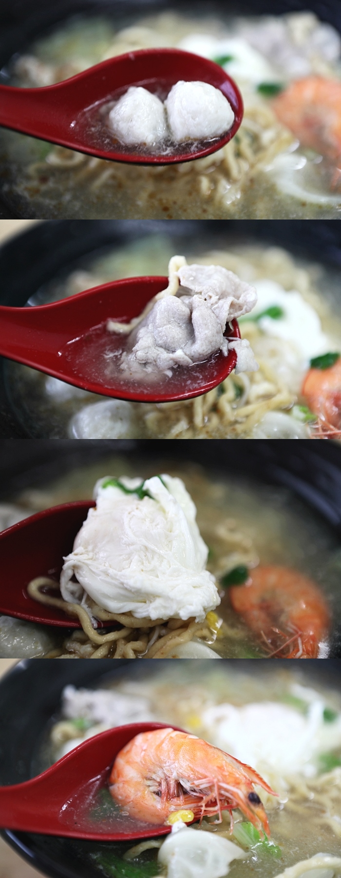 | 60元的鍋燒麵料給的很多,火鍋料、丸子、肉片、蝦子通通都有,我深深覺得哩來鐵板炒飯他們真的是做開心的,不管炒飯還是鍋燒麵都那麼重本XD |