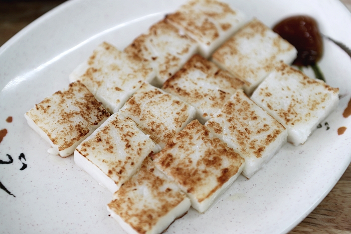 蘿蔔糕也讓我滿驚豔的,重點也是超級便宜的,不沾醬入口就真的有濃郁的蘿蔔鮮味,非常好吃,但是我比較喜歡煎到"赤赤"的那種。 |