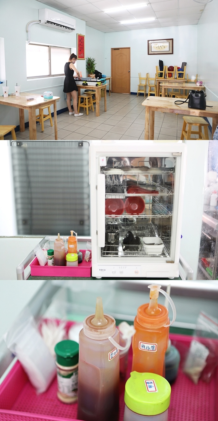 | 店內有冷氣所以很涼,打掃的也超級乾淨,難怪會被那麼多台東人喜愛,餐具都在保溫箱,連保溫箱都很乾淨,感覺每天都有再保養擦拭,醬料的部分則是再共用桌上。 |