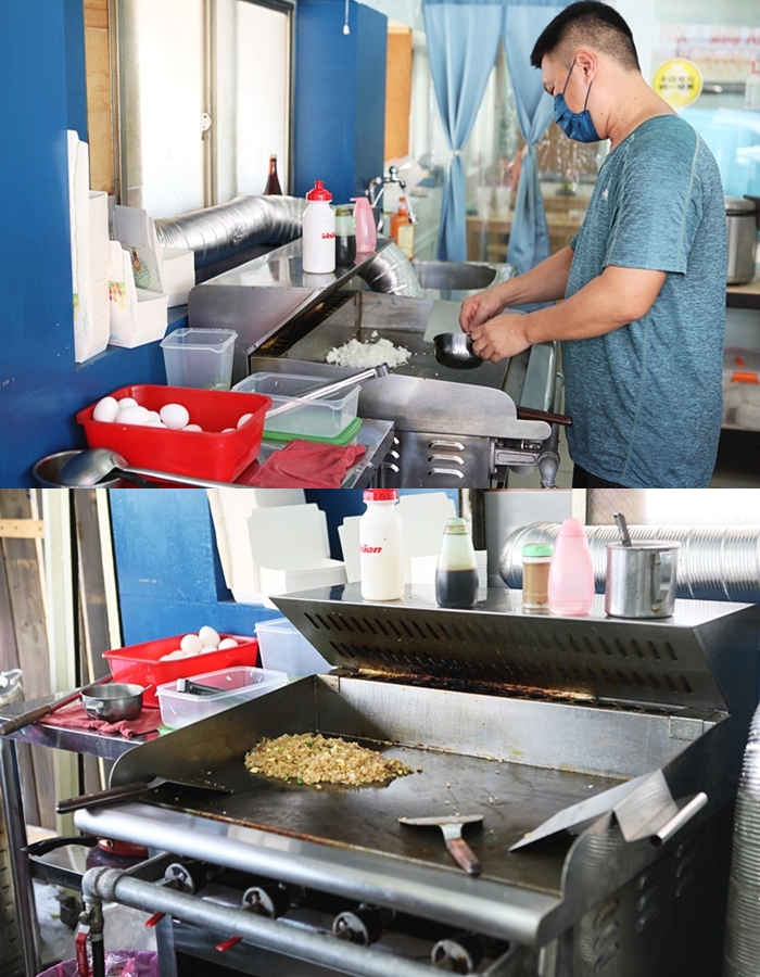 | 哩來鐵板炒飯似乎是一對夫妻一起經營,不過看它們料理的步驟都還滿細心的。 |