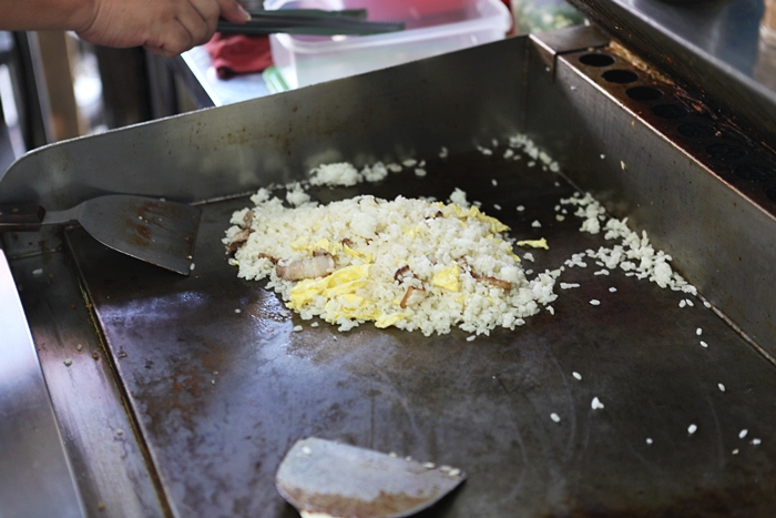 | 鐵板炒飯真的很少見,老闆說因為有時候用餐時間非常多人預定,用鐵板他比較能控制品質以外,也很好控制火侯跟份量,炒起來的美味不會輸給快速爐的翻炒,不管真實答案是什麼,看老闆那麼認真我是信了啦! |