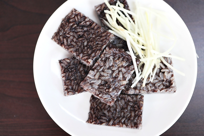 | 這顏色看起來就是100%道地的鴨米血,跟坊間的雜血混合的就是不一樣,口感紮實許多。 |
