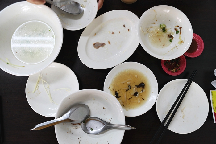 | 其實菜是陸續上來的,但是為了可以拍到這一整桌的豐富菜色,忍了一下的口水才拍合體照,這樣的價位很便宜,在台北可以要花兩倍左右的錢才能吃到了。 |