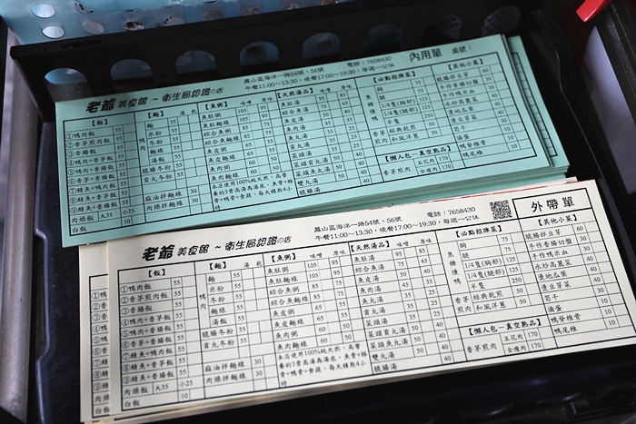 | 菜單分為外帶跟內用,品項很多,老實說我不知道該把它定位成小攤販還是中餐廳,賣的東西說真的涵蓋範圍很大,老爺的美食守備範圍可能是外野手的階段XD |