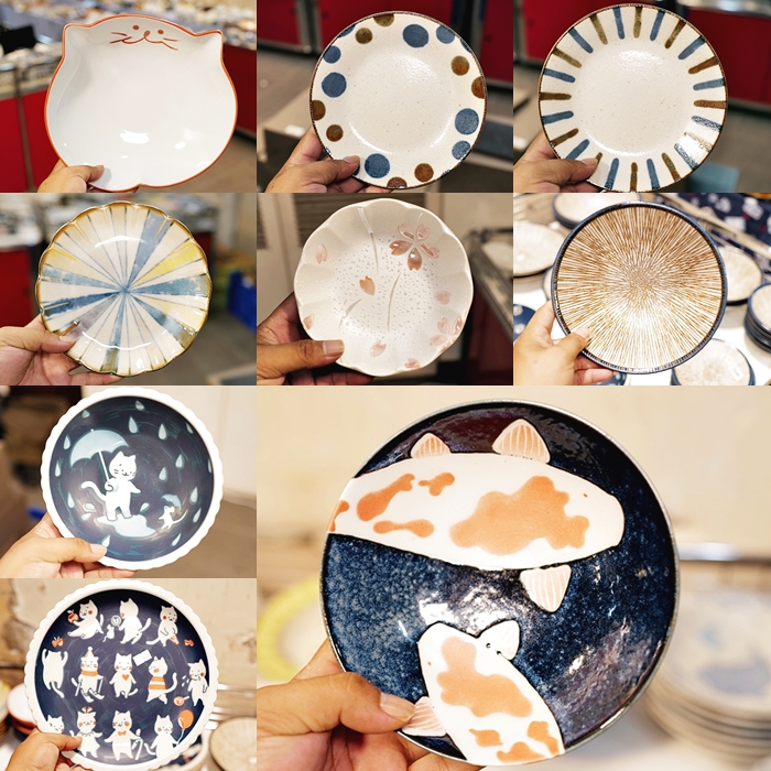 之前很多人詢問的8吋皿八吋皿的容量比較符合台灣人吃正餐的大小,所以被掃貨的速度都很快,很多都是很經典的款式,這次很多圖繪都超可愛的,這一區日本碗盤真的都超美的,不管是質感還是圖繪都超厲害,而且這邊的價格比起百貨跟賣場便宜超級多的!