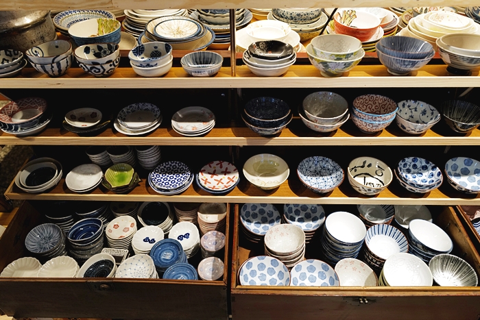 | 樂陶販賣所的日式碗盤商品真的超級多,品項也不輸給職業販售日本碗盤批發商,雖然空間不大,但是碗盤堆疊起來的數量相當驚人,絕對能滿足愛挖寶的人! |