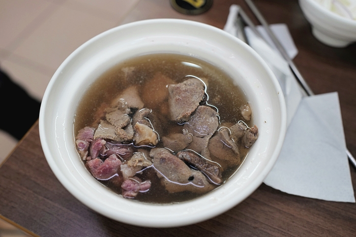 綜合湯的湯頭喝起來較複雜一點,可能因為有牛肝牛雜牛肉的食材,味道重了一點,回頭在喝牛肉湯就爽口很多,我個人比較喜歡牛肉湯的湯頭,但是食材比較喜歡綜合湯,牛雜跟牛肝還是比較適合胡椒湯頭。 |
