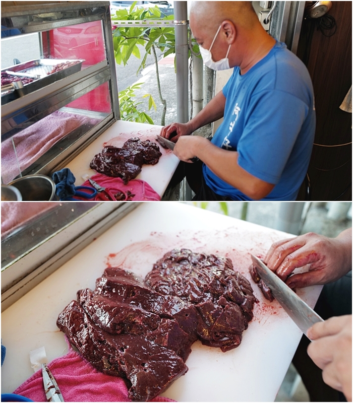 | 剛好看到老闆在切牛肝,牛肝看起來就一整個超新鮮阿,看得我口水直流! |