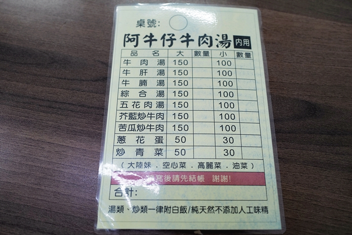 | 牛肉湯的品項還滿多的,還有熱炒類,價位看起來也很實惠,當天要多點菜的時候,還被老闆娘說我會吃不完一直勸我不要點了,真的很可愛XD |