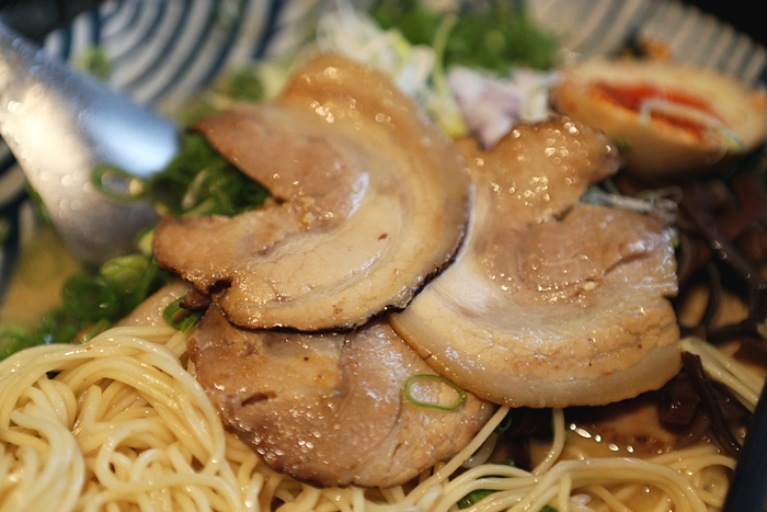 | 豚骨湯頭喝起來頗有模有樣,豚骨的油、香、純、厚都拿貼的恰到好處,如果想更重一點的話,可以跟店家說要加背脂,加背脂需要多加錢,鹹度也調整到台灣人可以接受的程度,順口好喝! |
