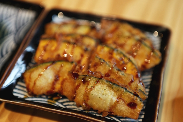 南瓜非常甜,天婦羅的麵衣薄薄一層非常討喜,讓人滿驚豔的,調醬也很配。 |