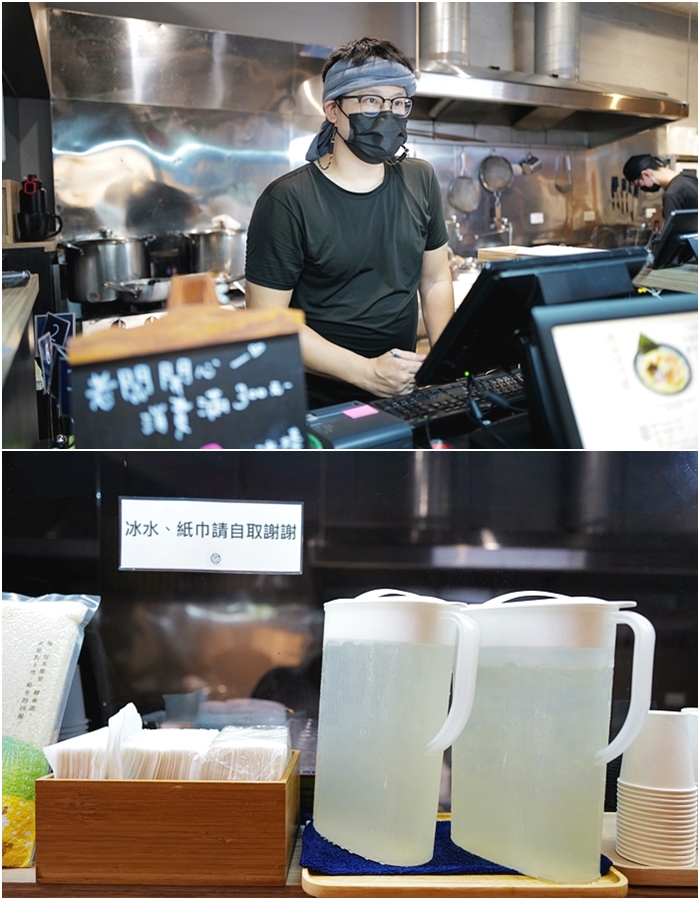 | 店內採取自助式,點完餐點後需要先結帳,水跟紙巾都在櫃台旁,需要自取。 |