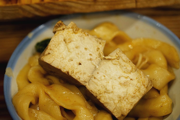 | 臭豆腐的氣孔較多,吃起來的口感還滿討喜的,吸飽了麻辣湯汁,滿過癮的,倒是氣味幾乎沒有感覺有臭豆腐的味道。 |