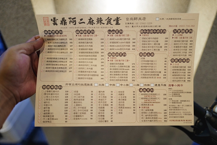 | 雲鼎阿二之前就有聽到很多朋友提起它,但是一直沒有去造訪看看,主要還是因為想吃的餐廳真的太多了,這天來到師大商圈辦點事情,剛好正值晚餐時間,逛了一大圈都沒看到有想要試試看的餐廳,所以又繞回來了這裡,想說試試看雲鼎阿二麻辣,因為它們的人潮真的還滿多的。 |