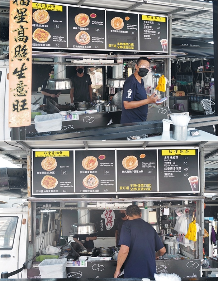 | 記愣炸蛋蔥油餅老闆還滿客氣的,點完餐後老闆說要等一下,前面還有一些客人的預定要先趕出來。 |
