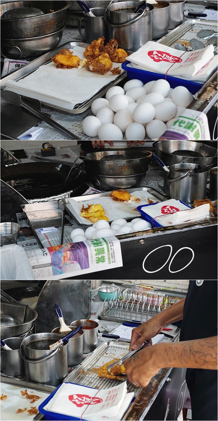 | 我們一家都是愛吃蔥油餅的人,這次來台南工作完後跟店員聊到上次她買給我的鄭記蔥肉餅我還滿喜歡的,這時候另一個在地台南店員馬上跟我說,他們附近有有一家記愣炸蛋蔥油餅也很有名,她也滿推薦的,所以我們就大中午的跑來這裡了,記愣炸蛋蔥油餅就在成功夜市的大馬路上,是一台小攤車。 |