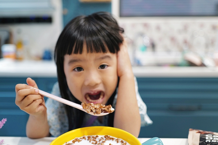 巧克力口味是我們一家三口都很愛的口味,一口下去就是滿滿的巧克力香氣,但在嘴裡卻又不會膩口,帶點牛奶的香氣,是Cola最愛搭配鮮奶的點心,她說味道很像她喜歡喝的美祿。