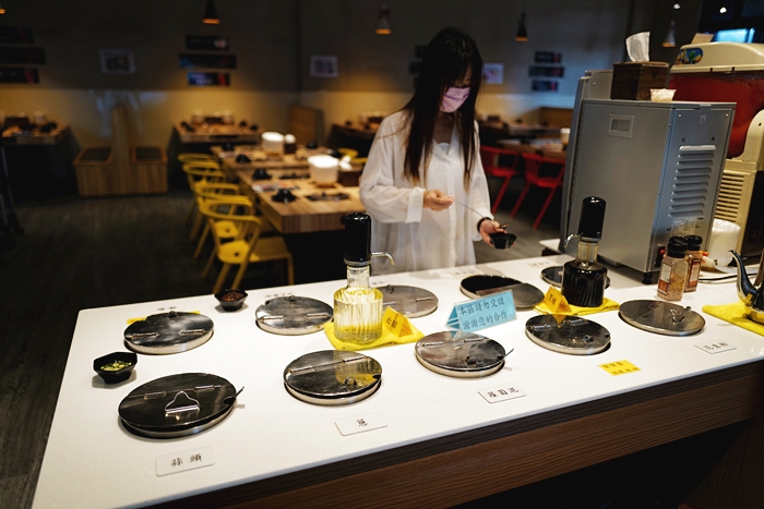 | 自助吧的醬料區有左右兩側,晚餐用餐人潮最多的時候也不會一群人擠在一起,醬料的選擇也很豐富,補料也補的很勤。 |