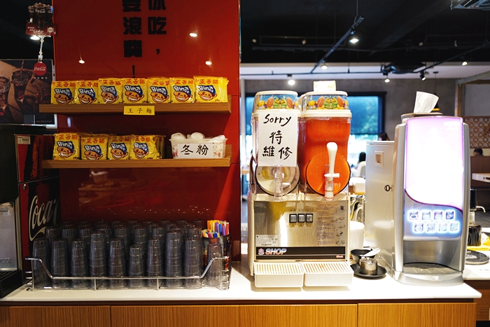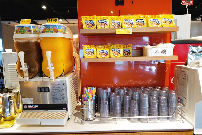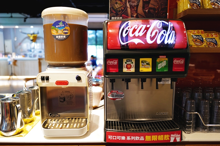 | 飲料的選擇也很多,除了有可樂機五種選擇以外,另外還有四款冰沙口味跟奶茶可以選擇,飯後想喝杯熱咖啡也沒問題,還有提供王子泡麵跟冬粉可以無限量供應,整體來說自助吧算還滿不錯的。 |