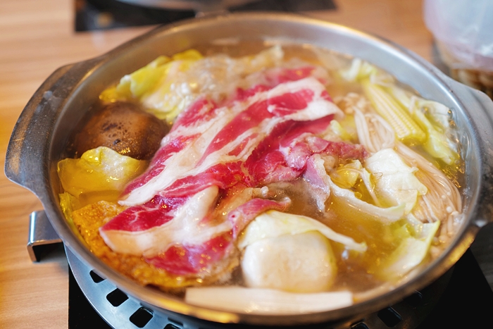 | 上菜的速度也很快,崎玉火鍋的湯頭一開始都會送原味高湯上來,自助吧上有多種湯頭鐵壺,可以自行改變湯頭,換湯頭的部分則是不加收費用,也有提供兒童座椅跟餐具,桌面家熱鍋物是使用電磁爐。 |