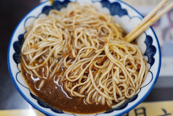 | 拌完後感覺非常黏稠,拌開以後麻醬的味道就更濃郁了,老實說我在宜蘭也吃了不少家麻醬麵名店,大麵章確實有自己的獨特之處。 |