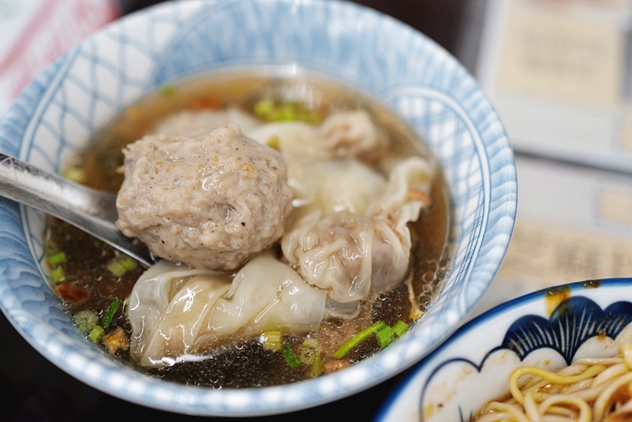 也可以點綜合湯,就是肉丸跟餛飩個半,香菇肉丸吃起來我比較沒有感覺,可能常吃新竹的幾家好吃貢丸習慣了,香比起來餛飩比肉圓好吃多了,吃麵的時候聽到隔壁桌好像是在地老客人,跟老闆叫的湯是一顆肉丸其他餛飩,他還跟朋友說可以這樣叫,下次我也要學他肉丸只要一顆就好。