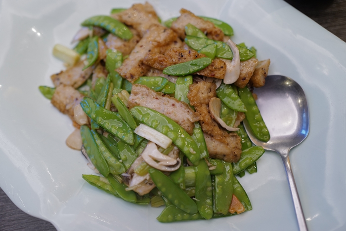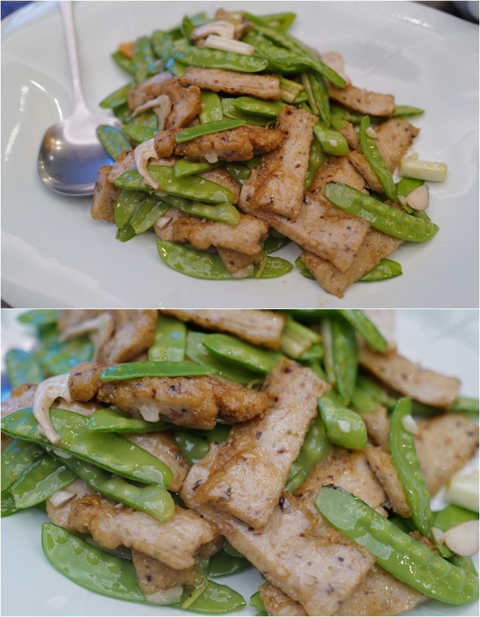 | 鯪魚打成漿後做成魚餅吃起來的口感倒有點像是甜不辣,魚餅切片後咀嚼中還是可以吃到魚肉的鮮甜,吃起來鹹酥的滋味很順口,搭配四季豆的爽脆口感,一整個讓我也非常喜歡。 |