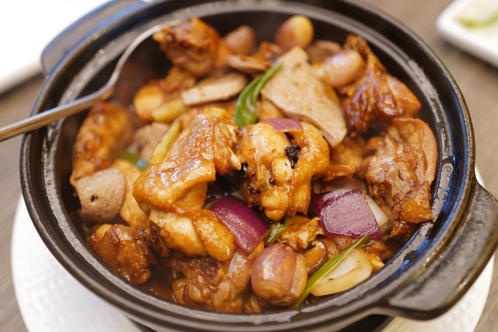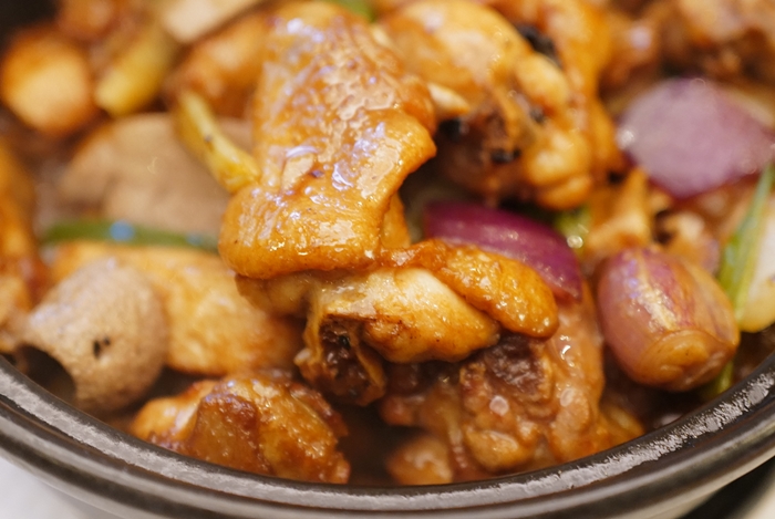 | 端上來的時候吃了一口雞肉,很像是台式的三杯雞,但是三杯雞的口味再重一點,結果澳門友人說這一道菜重點是他的豬肝,豬肝吃起來果真特別,那爽脆的豬肝跟台灣的口感完全不一樣。 |