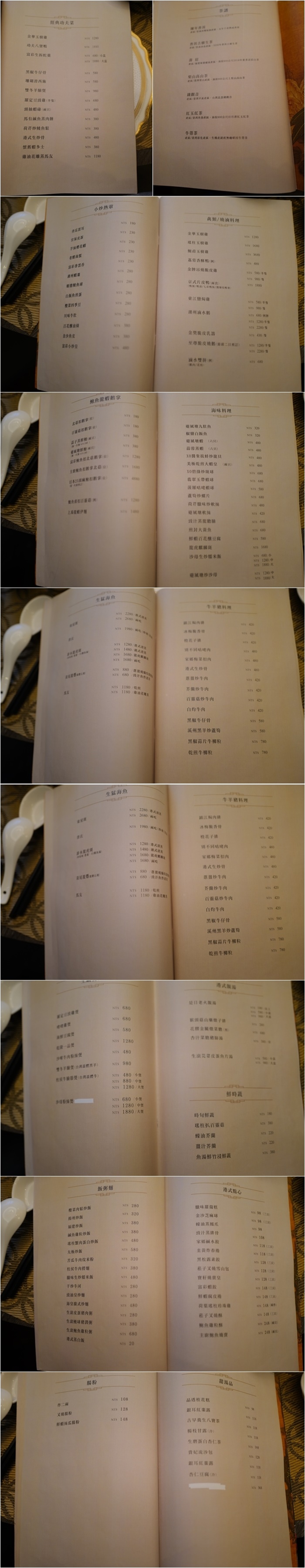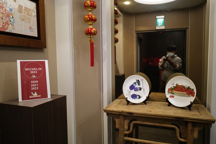 我們被安排在一旁的獨立包廂,瓷器用的都算是水準,菜單本也滿樸素的,頗有老香港的味道,翻開菜單基本上讓我頗為訝異,價格甚至跟一般的中餐廳相差無幾,掛上了米其林的光環,價格去依然親民,光這一點就博得我們一群人的好感度。