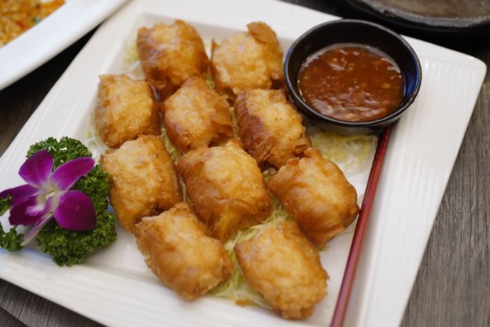| 百花釀油條這幾年也看到很多火鍋店都有這道食材,油條頗開讀塗上蝦漿,張炸起來熱呼呼的沾醬非常好吃,油條表皮脆口,蝦漿彈牙鮮甜。 |