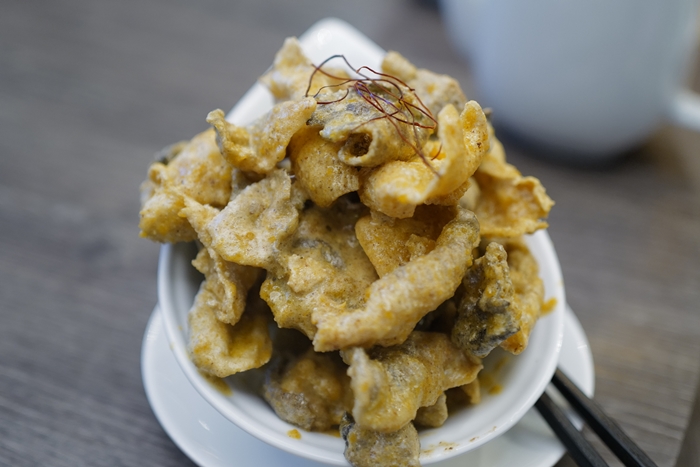 魚皮不知道是不是我太晚夾了,炸的金黃酥脆,但是吃的我滿嘴油,前提是我不知道怎樣的金沙魚皮才是道地,我只依照自己的喜好來表達,金沙非常濃郁,口感酥脆,但是偏油! |