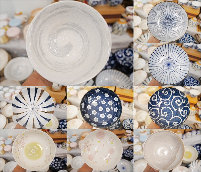 | 這是麵碗擺了滿滿的兩台花車,日本飯碗的尺寸較多,還有中平跟大平應有盡有,這次就是要讓妳買到不要不要的,日本麵碗的尺寸大概跟台灣一般的飯碗差不多大小,碗口會再稍微大一點。 |