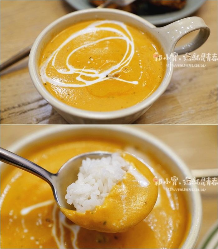 | 堅果咖哩是他們家的招牌,很多人都是為了這一款堅果咖哩來的,我們這次也點了兩份堅果咖哩,主要是怕其他咖哩會辣,我家小朋友不敢吃辣,堅果咖哩看起來就很適合小朋友,女兒吃了一口覺得頗為滿意,甜甜的帶些堅果香氣。 |