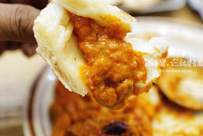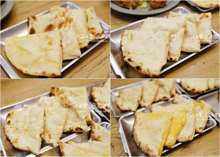| 甩餅上桌看起來跟我們一般所了解的印度甩餅造型不一樣,而是一片片剪好疊好方便實用,霎那間更像是蔥油餅,口感上也會有些差異,不算是正統的甩餅,但是是滿好吃的餅。 |