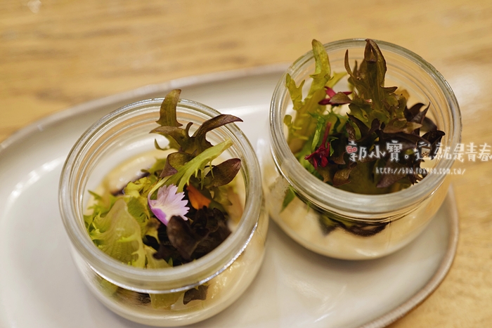 | 小盆栽造型的沙拉看起來頗為可愛,沙拉醬像式凱薩醬,頗好吃!