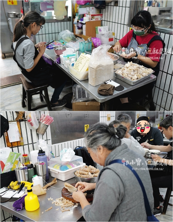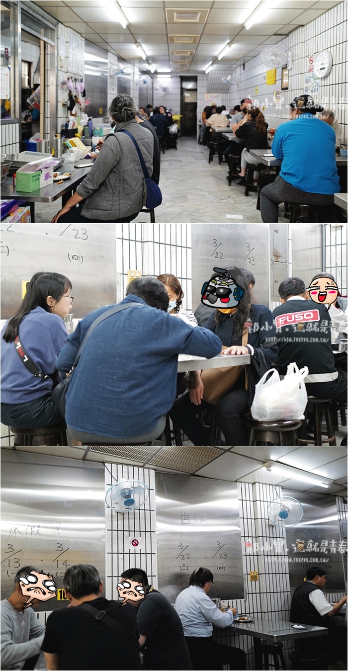 | 店內的座位數不多,但是人潮超級滿,其中還有兩三張桌子是員工在包餛飩跟備料。 |