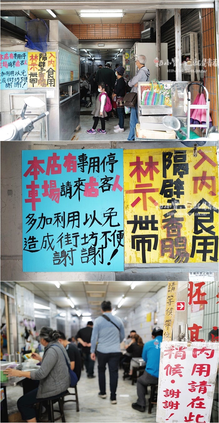 | 在外面排了大約10來分鐘,外面還有自製海報,讓我注意的是特別告誡隔壁香腸禁止攜帶入內食用,剛剛我再停好車的時候,也有發現隔壁的香腸攤生意也超好,看起來是鄰居相處得不好XD |