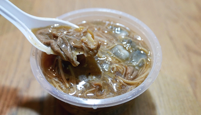 麵線口感滑順,有勾薄芡,沒有多餘水份;蚵仔有勾薄粉,吃得出鮮甜味;大腸滷得入味,口感軟嫩,雖然是小碗但是整體份量相當足夠。 |