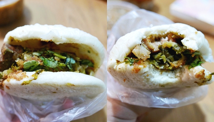 割包是我最常吃的,三層肉加酸菜,撒上花生粉再加點香菜增香,層次豐富。想吃肥一點還是瘦一點的都可以跟老闆娘說一聲就會幫忙處理了。 |