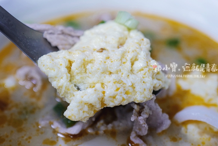 | 來來米干的蛋是烘蛋,吸飽湯汁的烘蛋入口輕盈,湯頭的滋味跟著蛋花一起入喉。 |