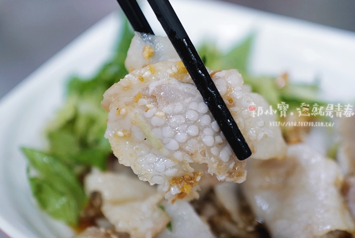 | 豬肝的份量不少,豬肝切的比較薄一點,我喜歡切的厚一點的,不錯豬肝還算嫩口,不會太老,吃起來也沒有腥味,處理的相當不錯。 |