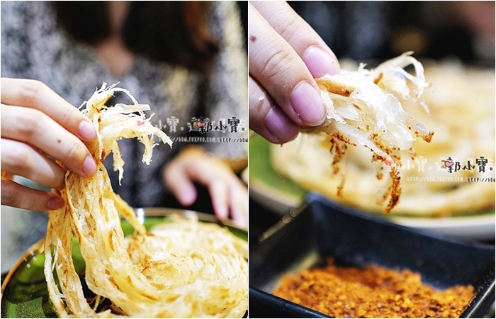 | 吃烙餅我還是最喜歡用手撕,看看是不是正統的烙餅可以一絲一絲的撕起來,撕起它們家的烙餅確實有驚豔到我,確實像他們的店名一樣一窩絲。 |