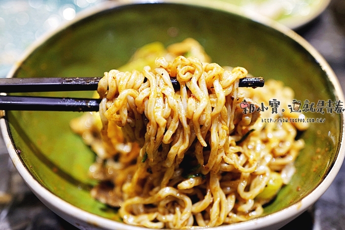 | 拌完的顏色相當不錯,一口吃下頗為滿意,不像韓國的那麼甜,帶點甜味的鹹甜鹹甜感瞬間也是虜獲了很多女生的心,麵食吃起來有點像是烏龍麵的感覺,那彈牙的Q度我超愛。 |