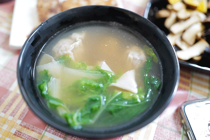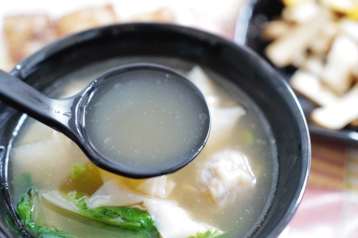 | 雲吞湯就是巧來的招牌之一,他們家的雲吞我都會固定宅配很多放在家裡面,家裡煮面時候就會放個兩三顆,但是店裡的湯頭卻是學不來的,湯頭滿溫潤的,味道稍淡,但是喝完不會覺得口乾舌燥。 |