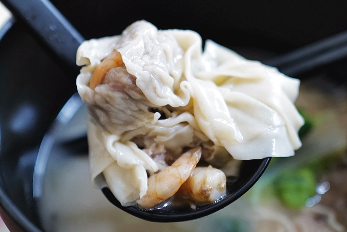 可已看到每一顆雲吞都很飽滿,大約數了一下裡面有4.5顆雲吞的樣子,內餡都很紮實以外,還可以看到裡面的豬肉都還是呈現粉紅色的狀態,內餡就是新鮮的豬肉跟蝦子,這樣看起來我覺得一碗90元真的還滿便宜的。