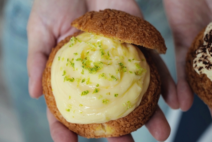 | 黃金檸檬生乳的味到太妃超愛,這口味很多女生都超喜歡,那酸甜的滋味搭配薄脆的泡芙真的好解膩,一次吃兩個泡芙也不會膩口。 |
